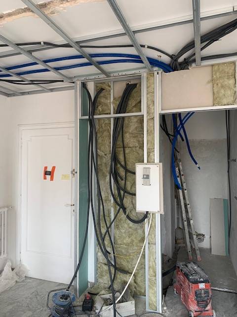 - Pose d’un nouvel appareillage électrique : commandes et prises haut de gamme, alliant design et fonctionnalité.